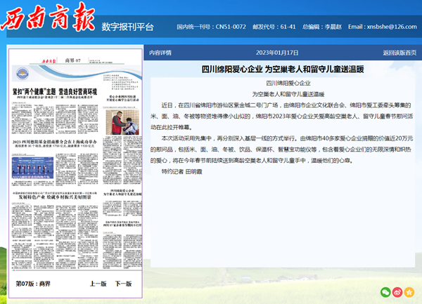 西南商報--四川綿陽愛心企業(yè) 為空巢老人和留守兒童送溫暖